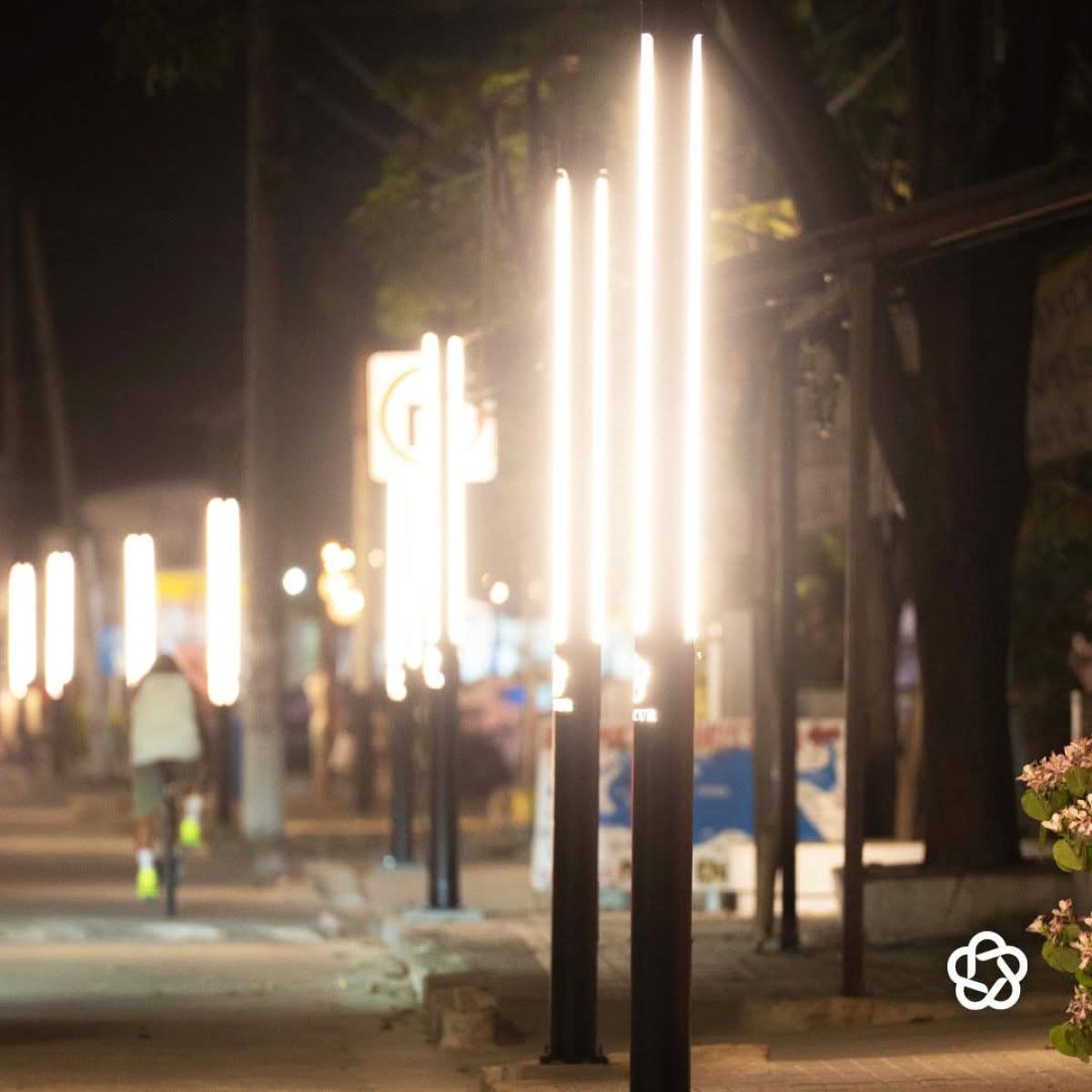 De acuerdo con lo informado, el tramo intervenido incluye más de dos kilómetros con postes de luz, además de trabajos complementarios como bacheo, mejora de guarniciones y acciones de saneamiento urbano.