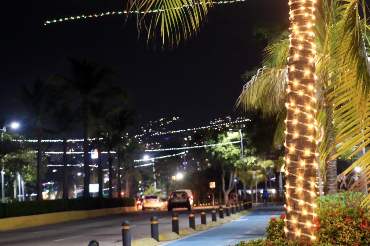Acapulco está listo para recibir a las y los turistas en esta próxima temporada decembrina, para ello, el gobierno municipal que encabeza la alcaldesa Abelina López Rodríguez, a través de la Dirección de Alumbrado Público, embellece la franja turística con miles de luces LED.