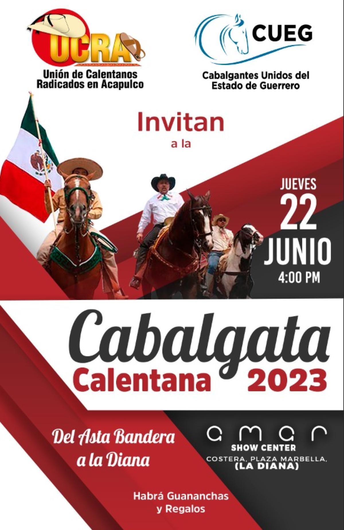 La Unión de Calentanos Radicados en Acapulco (UCRA) llega a Acapulco y nos trae dos días de pura fiesta para celebrar el "Día de San Juan" el próximo jueves 22 y viernes 23 de junio con una super cabalgata que comenzará el jueves 22 a las 4:00 de la tarde, partiendo desde el Asta Bandera hasta llegar a la plaza Marbella, justo en la Glorieta de La Diana.