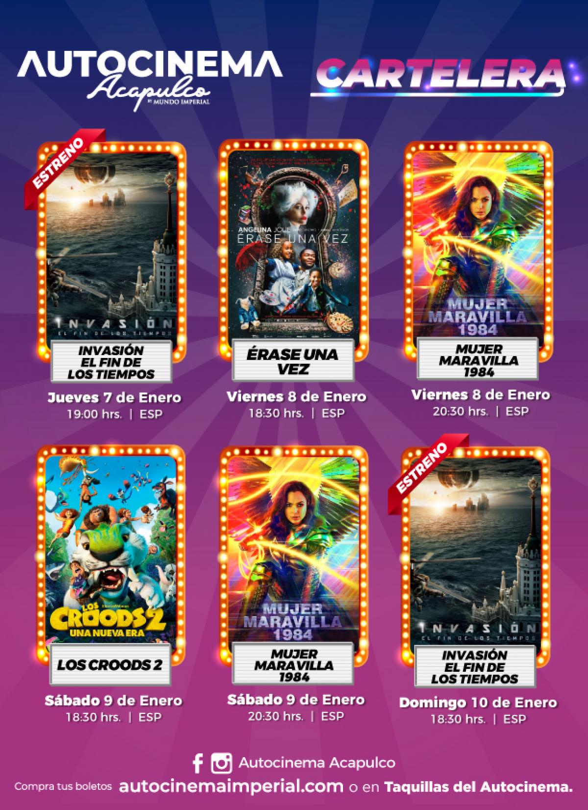 Autocinema Acapulco by Mundo Imperial te invita a pasar un fin de semana de entretenimiento y diversión con la cartelera que comprende del 7 al 10 de enero de 2021.