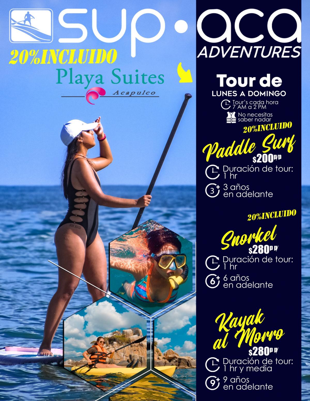 Si vives o visitas Acapulco durante las fiestas patrias o estas pensando arribar a este paradisiaco puerto en el puente de fin de semana, entonces aquí tienes una opción muy especial para disfrutar de Acapulco y sus playas con las promociones que nuestros amigos de Hotel Playa Suites y Sup Aca adventure tienen para ti.