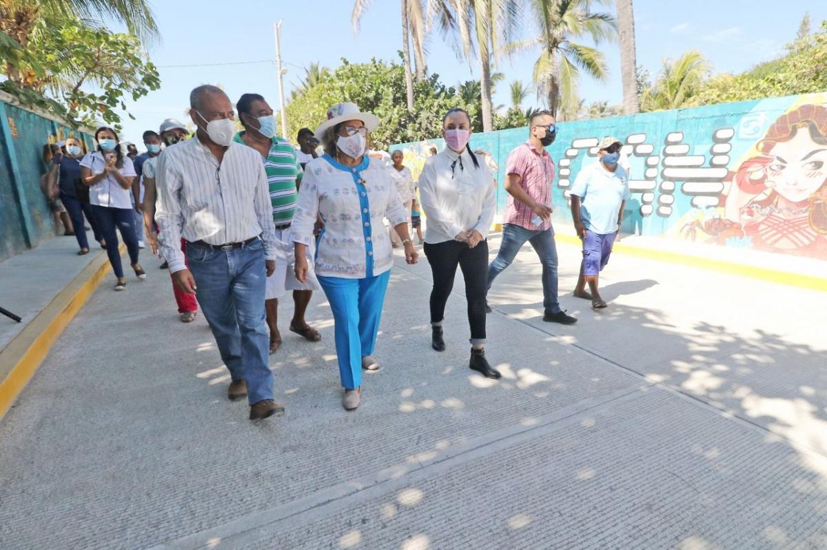 Acompañada de la presidenta del DIF Acapulco, Adriana Román Ocampo, la Ejecutiva Municipal recorrió la calle junto con los habitantes beneficiarios y funcionarios, para luego dar el corte de listón y constatar la calidad de la obra.