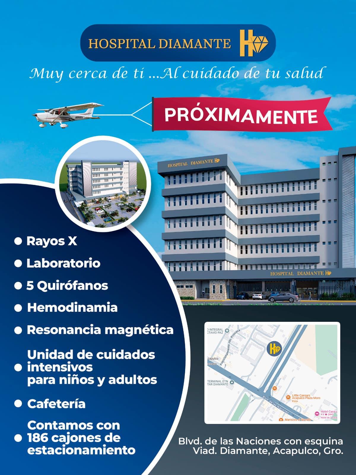 El nuevo hospital estará ubicado en Boulevard de las Naciones esquina con Viaducto Diamante, con acceso principal por el Boulevard de las Naciones. Este proyecto busca mejorar la atención médica en una de las zonas con mayor crecimiento de Acapulco, ofreciendo instalaciones de primer nivel y capacidad para atender a una gran cantidad de pacientes.