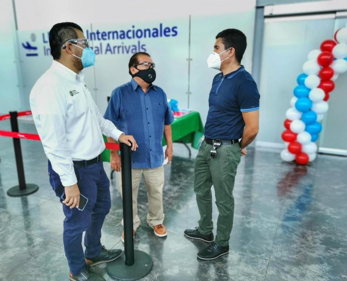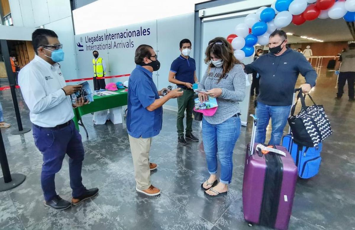 El secretario de Turismo Municipal, José Luis Basilio Talavera, en representación de la alcaldesa Adela Román Ocampo, constató durante la recepción de los visitantes que la aerolínea y la administración de la terminal aérea respetan y promueven los protocolos y medidas sanitarias.