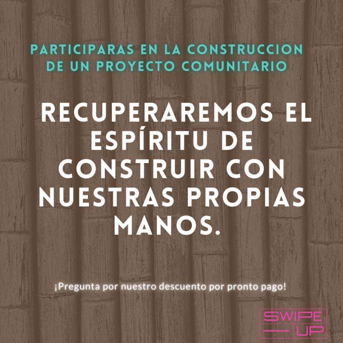 Y por si fuera poco tendrás la oportunidad de participar en un proceso donde recuperaremos el espíritu de construir con nuestras propias manos y contribuiremos a crear nuestro proyecto comunitario.