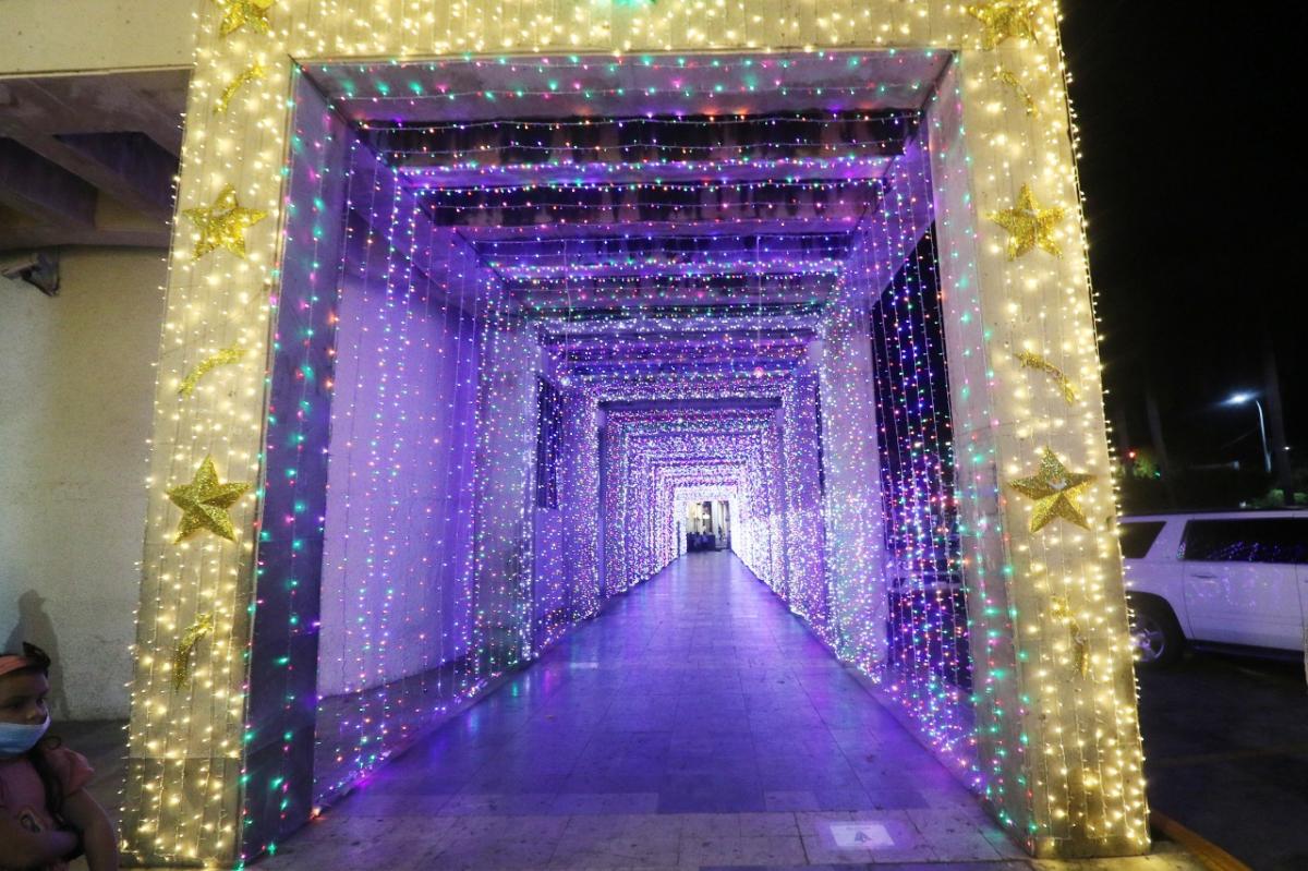 La presidenta se trasladó por último al Zócalo de la ciudad para accionar el interruptor y encender las luces del túnel de la fe y la esperanza, área que cobra un aspecto mágico con miles de focos multicolores, siendo utilizadas series recicladas que se usaron en años pasados.