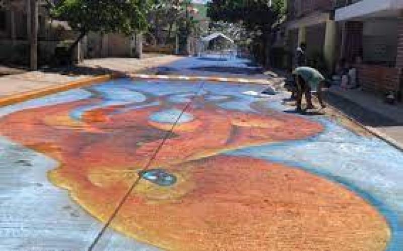 Integrantes del grupo juvenil dedicados al arte y la cultura conocidos como Coloso Crew se han encargado de pintar un kilómetro de asfalto de la Av. Benito Juárez que llega a playa Bonfil ubicada en Riviera Diamante con motivo a la celebración del noveno festival de pescado a la talla que se llevará a cabo los días 21 y 22 d octubre.