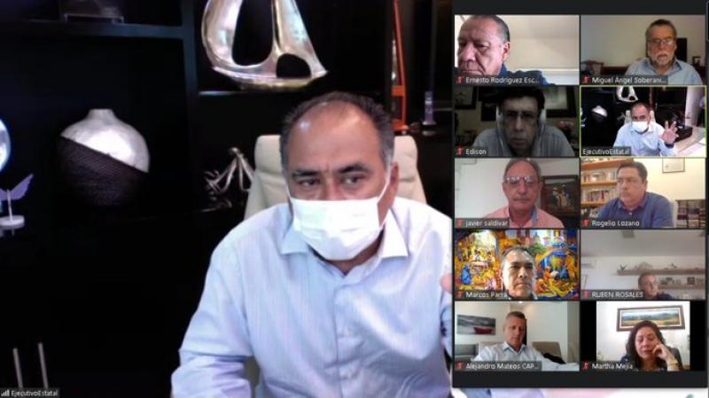 El mandatario estatal Héctor Astudillo Flores se reúne de manera virtual con otros representantes del sector turístico del Triángulo del Sol; Acapulco, Taxco e Ixtapa - Zihuatanejo, para hacer una supervisión en los protocolos de sanidad y capacidad en hoteles de estos destinos.