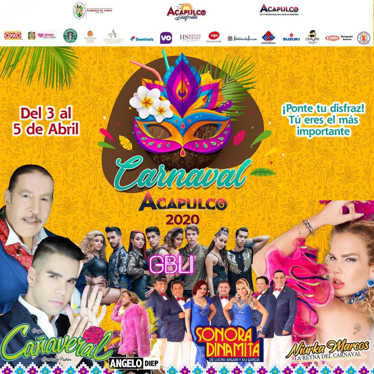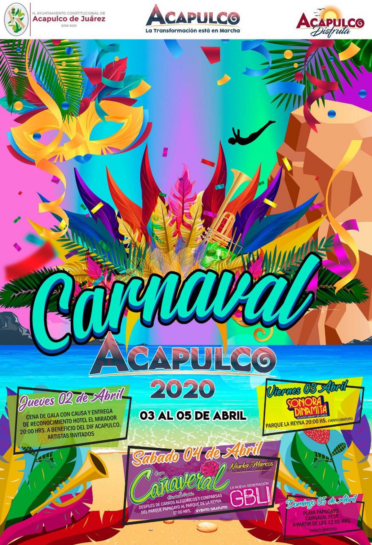 Del 3 al 5 de abril vive la primera edición del carnaval Acapulco 2020 con grupos musicales, baile, desfiles y artistas invitados.