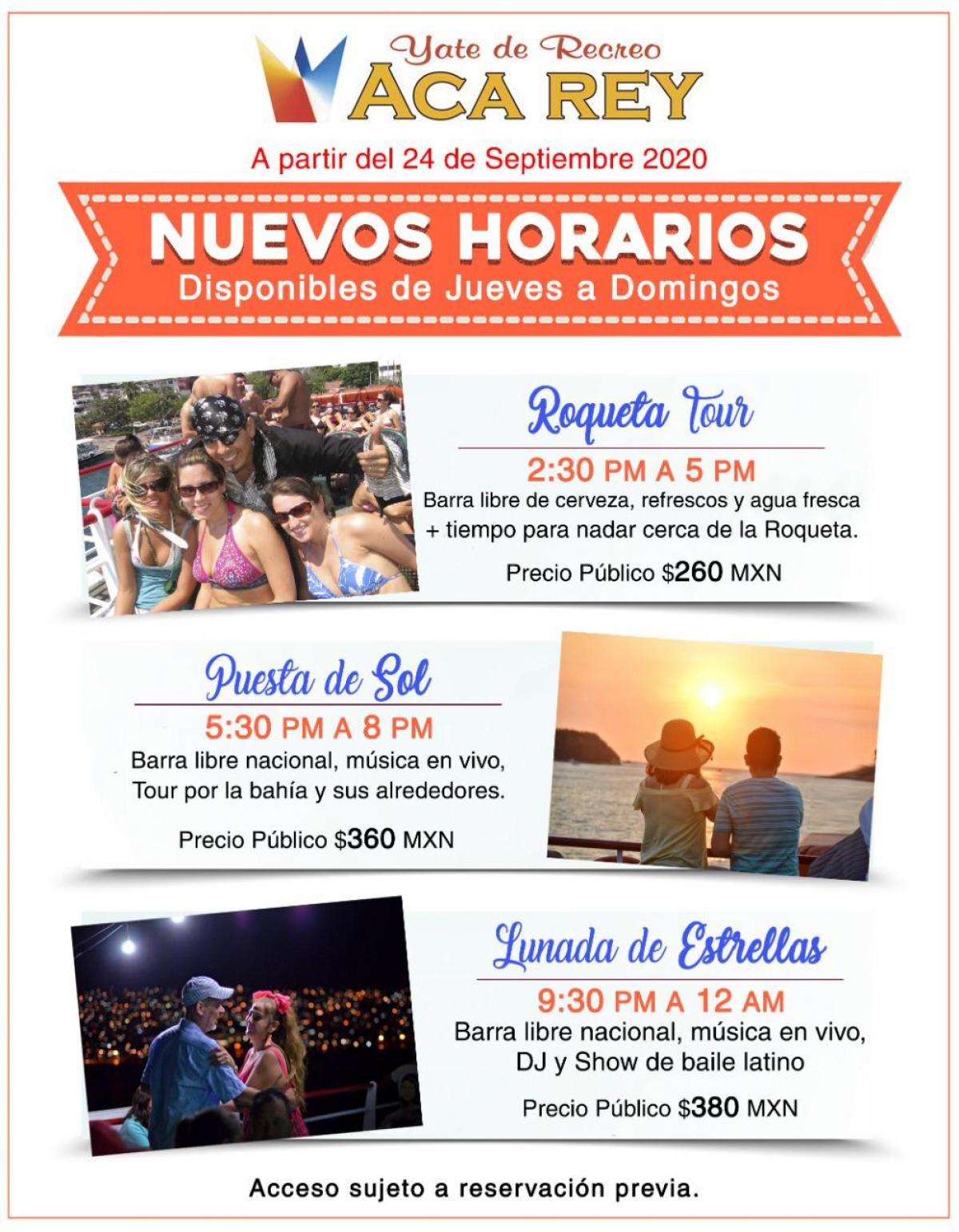 No te pierdas la experiencia de este recorrido turístico que Yate Aca Rey tiene para ti. Puedes realizar reservaciones al teléfono 744 482 66 46, 744 100 3637, visitar