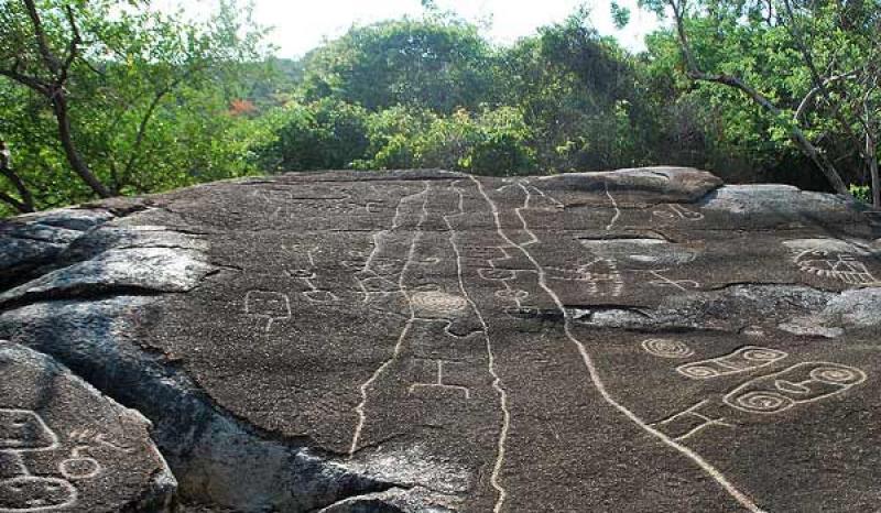 La parte que puede visitar el público posee una extensión es de tres hectáreas, conteniendo grabados distribuidos en 18 piedras; al parecer la parte habitacional se hallaba en la parte superior, donde se reporta la existencia de estructuras y materiales cerámicos.