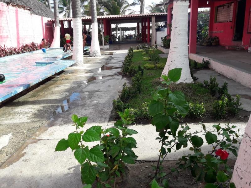 Deliciosa cocina en la playa, amplio estacionamiento, alberca, camastros y hamacas.