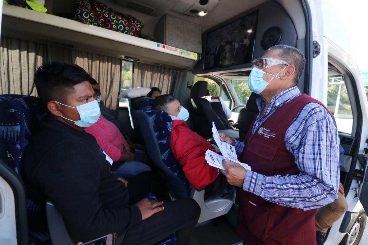 Desde temprana hora, personal de la jefatura de Regulación, Control y Fomento Sanitario de Salud Municipal, encabezados por el doctor René Talavera Rebolledo, encargado de la dependencia sanitaria, invitó a automovilistas y turistas de urvans y autobuses a ser responsables para disminuir los casos por Coronavirus, a fin de llegar a las vacaciones de diciembre y poder disfrutar la Navidad.