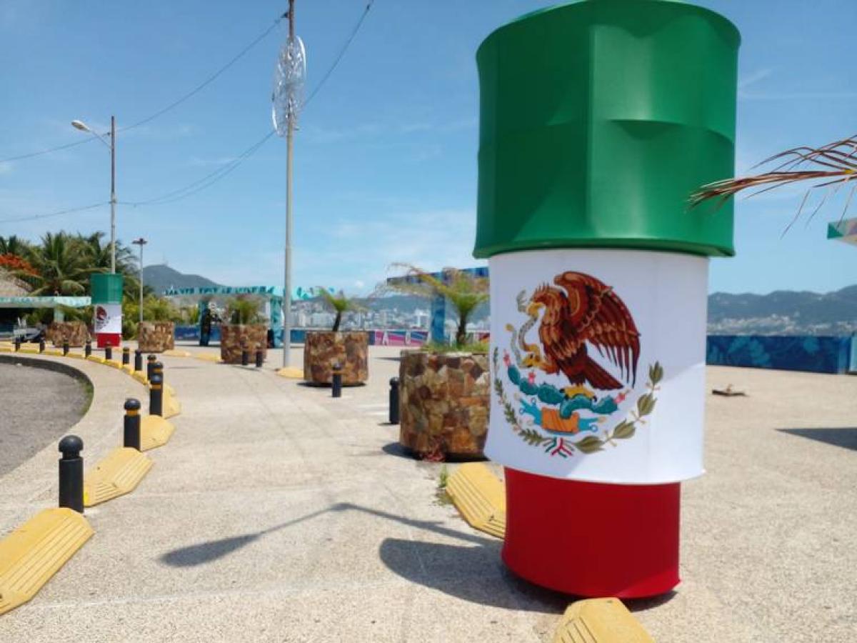 En el Parque de la Reina, se han colocado figuras decorativas que destacan estos colores patrios. Además, se ha erigido un hemiciclo en el Zócalo con imágenes alusivas a las festividades. El malecón ha sido transformado con letras luminosas tricolores que forman la palabra "México". Otros puntos icónicos como el Centro Internacional Acapulco contarán con letreros luminosos y decoraciones festivas.