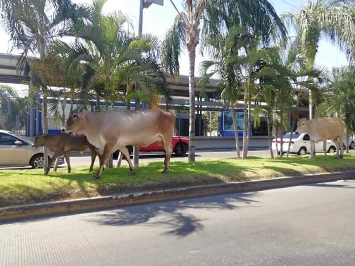 Hace unos días usuarios de Facebook hicieron virales algunas fotografías donde un grupo de vacunos circulaban muy cerca de las vías del Acabus.