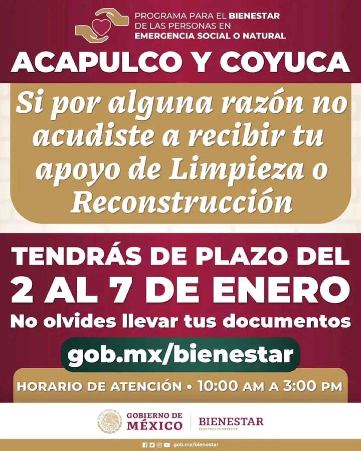 La Secretaría de Bienestar, liderada por Ariadna Montiel Reyes, hace un llamado urgente a los damnificados por el huracán Otis en Acapulco de Juárez y Coyuca de Benítez que aún no han recibido asistencia de limpieza o reconstrucción. El plazo para la atención a personas rezagadas se extiende del 2 al 7 de enero, brindando una ventana crucial para aquellos que necesitan ayuda.