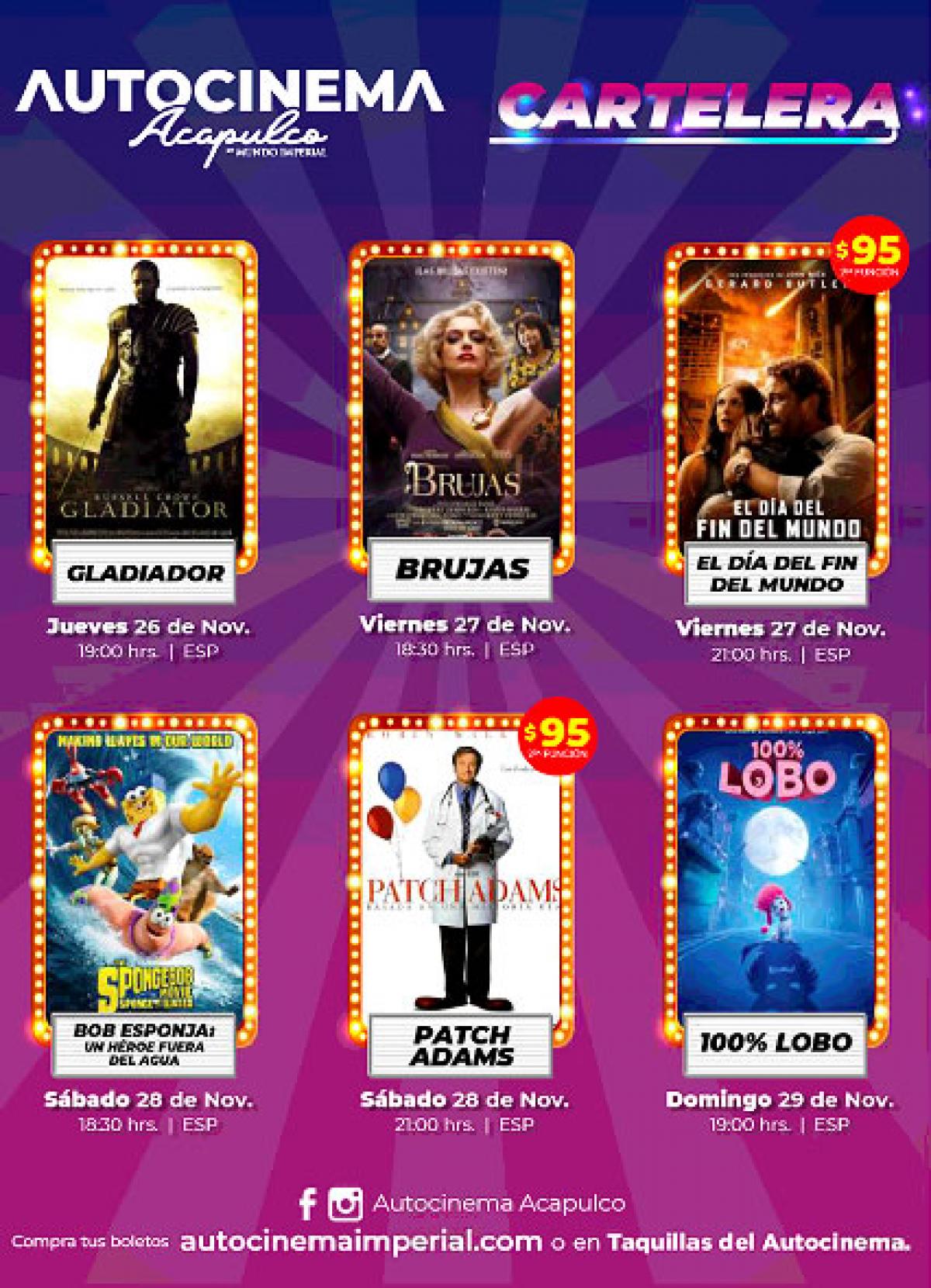 Autocinema Acapulco by Mundo Imperial te invita a pasar un fin de semana de entretenimiento y diversión con la cartelera que comprende del 26 al 29 de noviembre de 2020.