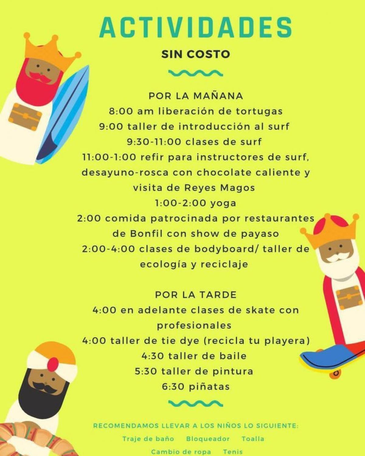 Con motivo de la celebración del Día de Reyes, se hace la más atenta invitación a residentes y visitantes de Acapulco para asistir y llevar a niños y niñas a pasar un día lleno de diversión realizando algunas actividades este jueves 6 de enero a partir de las 8:00 hrs hasta las 19:00 hrs en la playa Alfredo V. Bonfil de este maravilloso puerto.