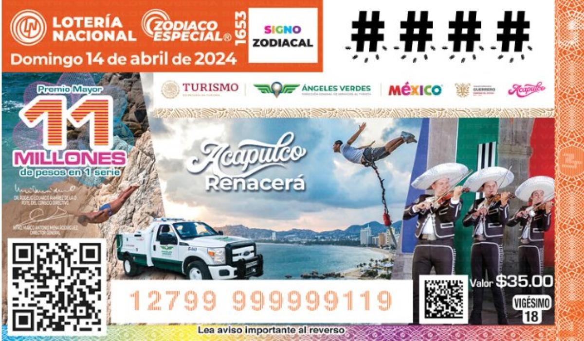 El sorteo se llevará a cabo la noche del domingo 14 de abril a las 20 horas, con transmisión en vivo por el Canal oficial de YouTube de Lotería Nacional. ¡Compra tu cachito y únete al renacimiento de Acapulco!