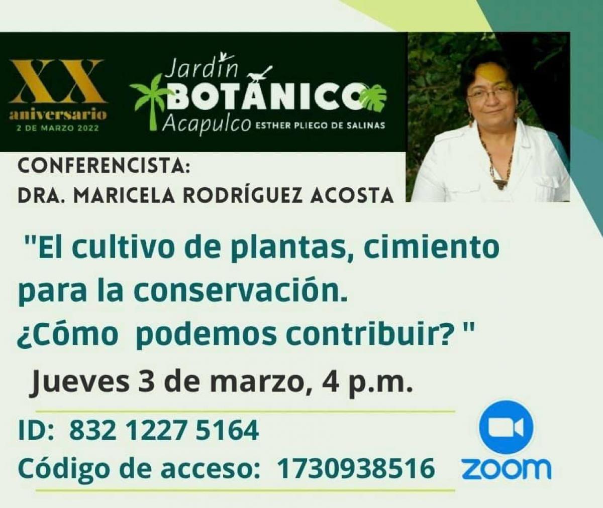 Esther Pliego de Salinas, fundadora y directora del Jardín Botánico de Acapulco anunció que habrá una serie de actividades para conmemorar uno de los sitios que preserva la selva subtropical caducifolia, propaga las especies nativas y fomentar el cuidado del medio ambiente.