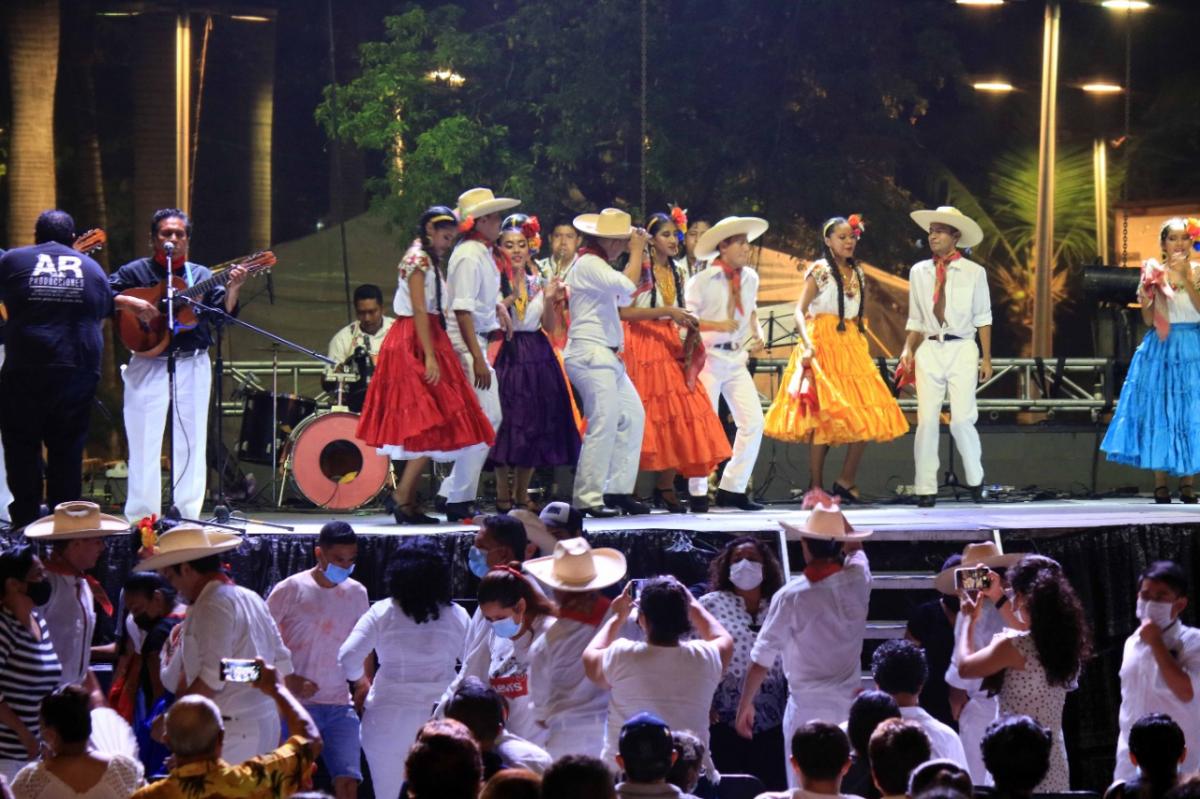 La presidenta municipal Abelina López Rodríguez, constató un lleno total en la sede principal del Parque de la Reina, donde la población coreó diferentes canciones y visualizó danzas tradicionales, como la danza de los diablos, realizada por el Grupo Zazil y la banda de música del Ayuntamiento, además de música de Ensamble Cultural Acapulco.