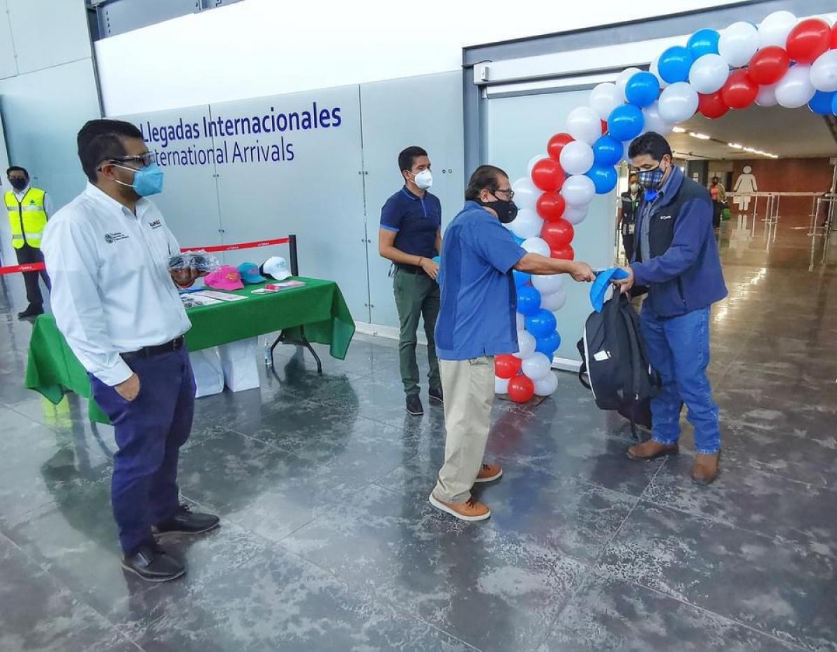 El secretario de Turismo Municipal, José Luis Basilio Talavera, en representación de la alcaldesa Adela Román Ocampo, constató durante la recepción de los visitantes que la aerolínea y la administración de la terminal aérea respetan y promueven los protocolos y medidas sanitarias.