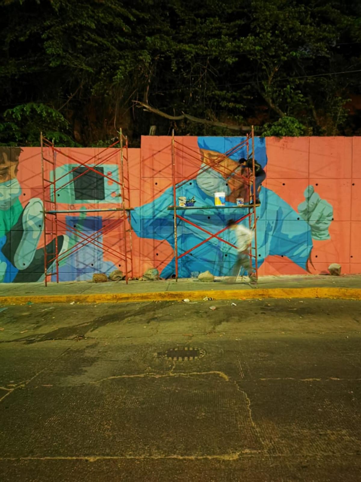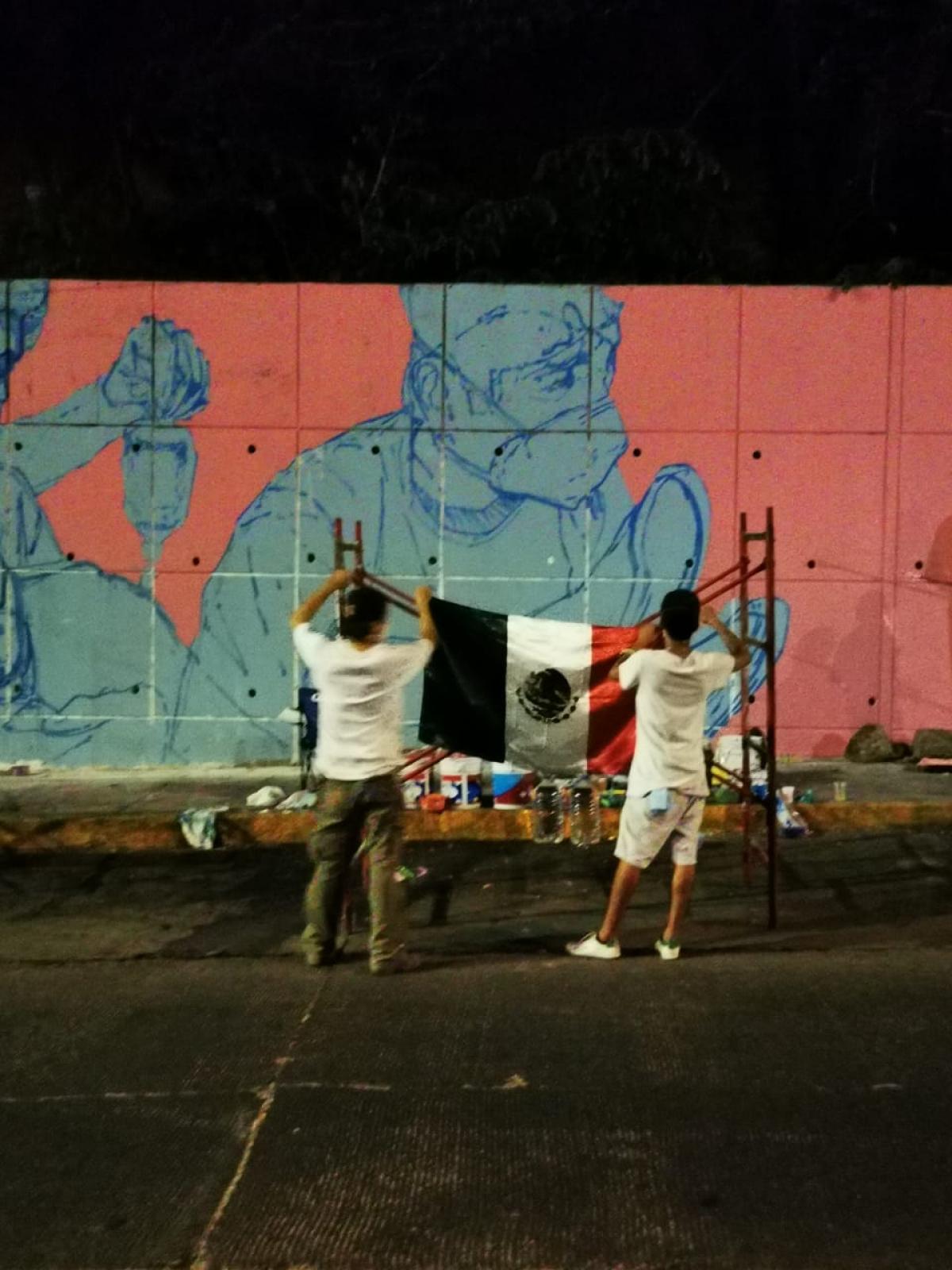 Gracias a la participación de 7artistas Acapulqueños en coordinación de la Dirección de imagen urbana municipal, develan mural titulado “Los héroes también lloran”