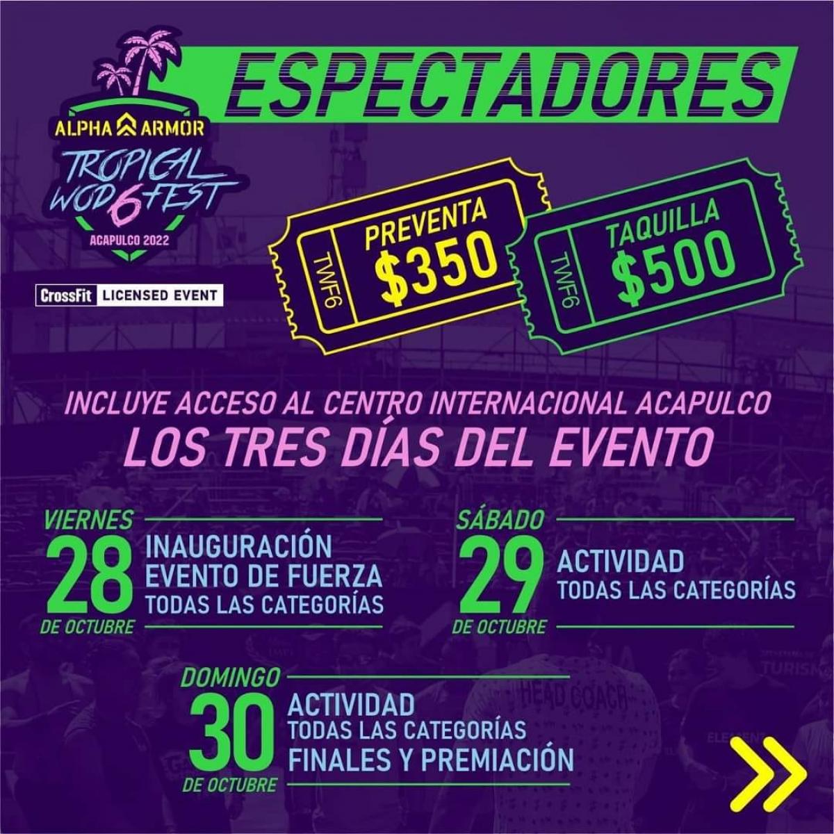 Adquiere y asegura tu entrada al mejor CrossFit de Latinoamérica donde podrás encontrar música en vivo, acceso a las zonas de competencia, acceso a la inauguración, finales, premiación y clausura del evento entre muchas cosas más.