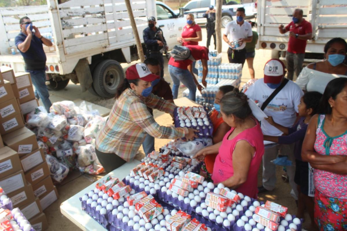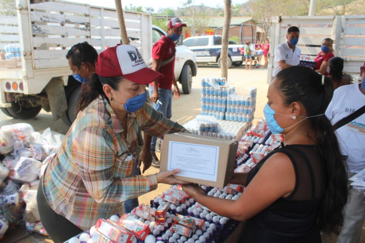 Al encabezar la entrega de productos de la canasta básica, la presidenta del Sistema Municipal para el Desarrollo Integral de la Familia (DIF-Acapulco), Adriana Román Ocampo aseguró a familias del poblado El Veladero que el programa alimentario, instrumentado debido a la contingencia de salud y económica por la pandemia de SARS-CoV-2, está llegando a los ciudadanos que más necesitan ayuda solidaria.