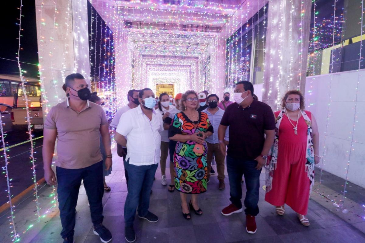 Junto con funcionarios de su gabinete, la alcaldesa recorrió el área y se tomó fotos del recuerdo con sus colaboradores y ciudadanos que celebraron este hermoso túnel que se ubica en la banqueta, desde la calle Venustiano Carraza hasta la entrada al Zócalo.