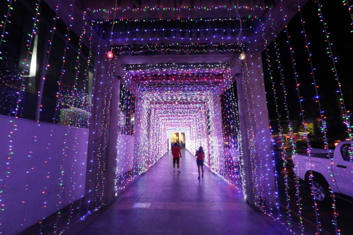 La presidenta se trasladó por último al Zócalo de la ciudad para accionar el interruptor y encender las luces del túnel de la fe y la esperanza, área que cobra un aspecto mágico con miles de focos multicolores, siendo utilizadas series recicladas que se usaron en años pasados.