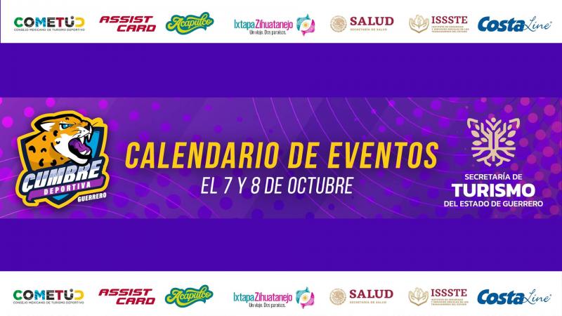 A continuación, encontrarás un listado de los eventos, torneos y capacitaciones confirmadas que se darán lugar en la Cumbre Deportiva Guerrero 2022 donde se darán cita más de 70 mil atletas, familiares, aficionados y organizadores en las distintas sedes elegidas para conmemorar a todas las disciplinas de acondicionamiento físico, equilibrio, contacto, fuerza y ejercitación.
