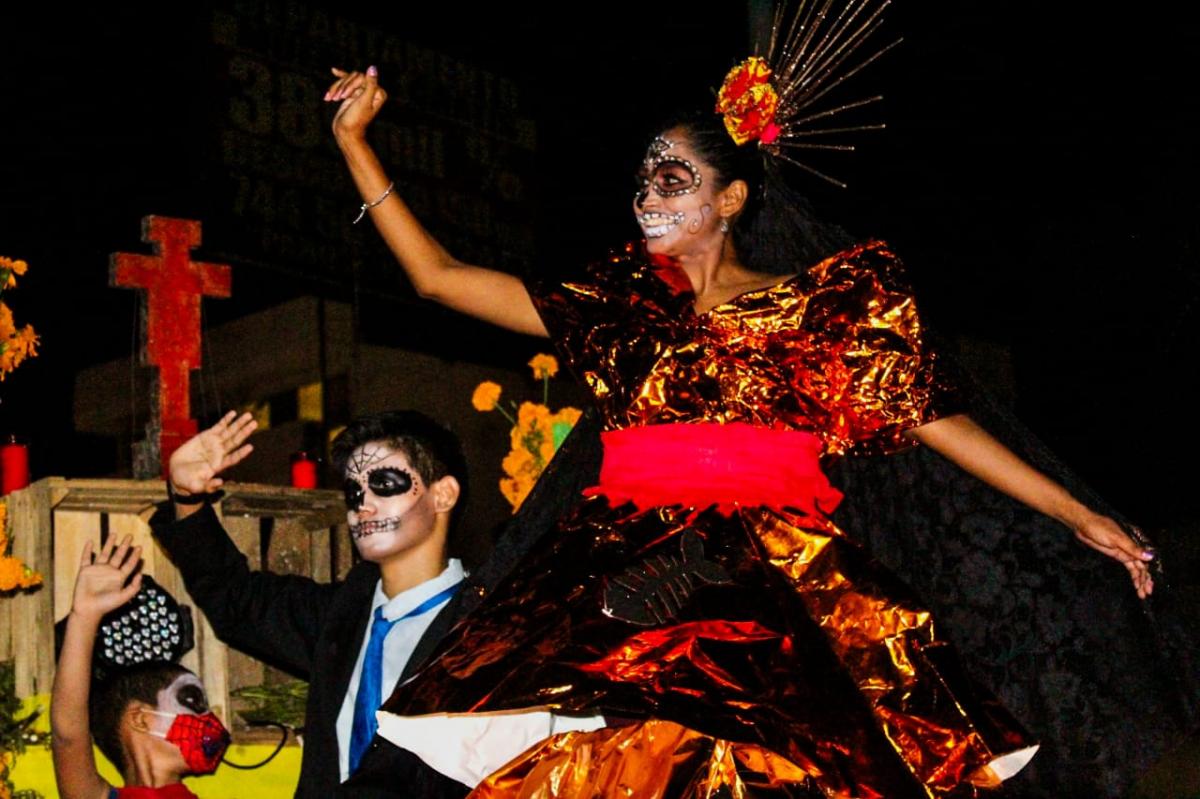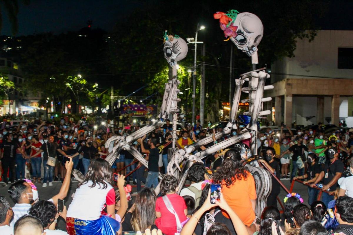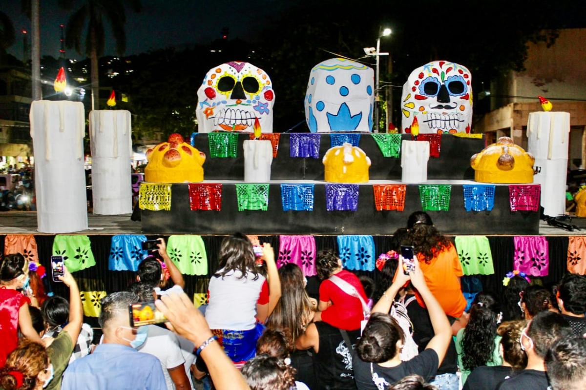 Como parte de los eventos programados durante el Acatrina Fest 2021, dependencias de gobierno, cámaras empresariales, empresarios y ciudadanos se unieron para ofrecer un desfile multicolor y conmemorar el tradicional Día de Muertos que recorrió la Av. Costera Miguel Alemán partiendo del parque papagayo con destino al Paseo del pescador.