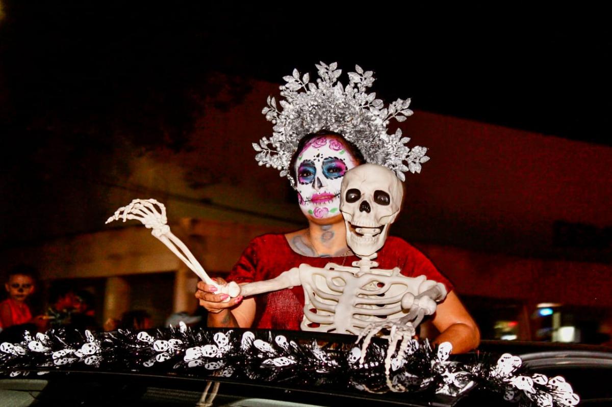 Cientos de familias se dieron cita desde las 17:00 horas en los distintos puntos de la franja turística donde pudieron disfrutar de la algarabía de carros alegóricos, carros temáticos, disfraces, calaveras de gran tamaño, catrinas y catrines encabezado por la presidenta municipal Abelina López Rodríguez.