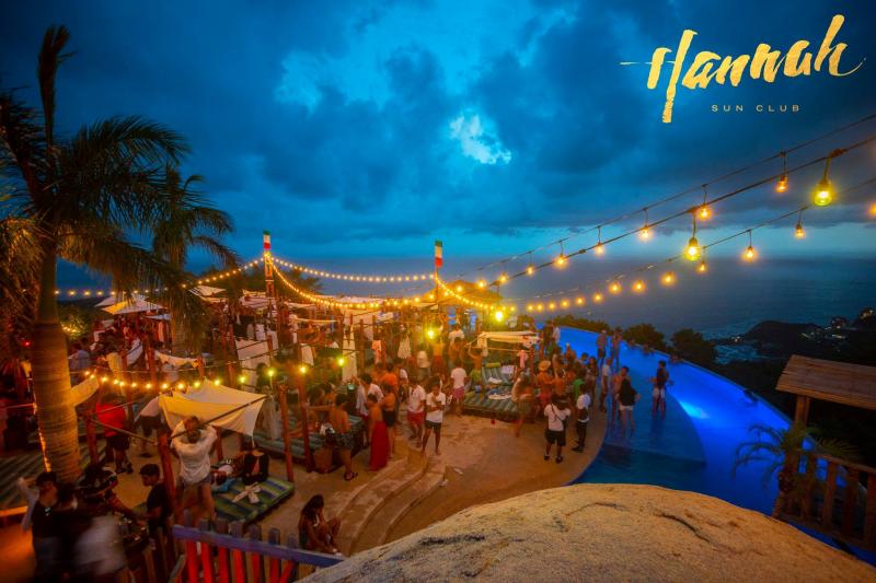 Hannah Sun Club es el club de día y el venue indicado para poder disfrutar de la mejor música, atmósfera, diversión y sobre todo unos épicos atardeceres. Se encuentra en una de las zonas más high de Acapulco en Lomas del Marqués, Corbeta #65. Este excelente club cuenta con servicios de comida, bebidas, cócteles y sus famosas hookahs, así como, camastros, camas y también con zona de alberca donde las Pool Parties se vuelven toda una pasarela si sabes a lo que nos referimos…